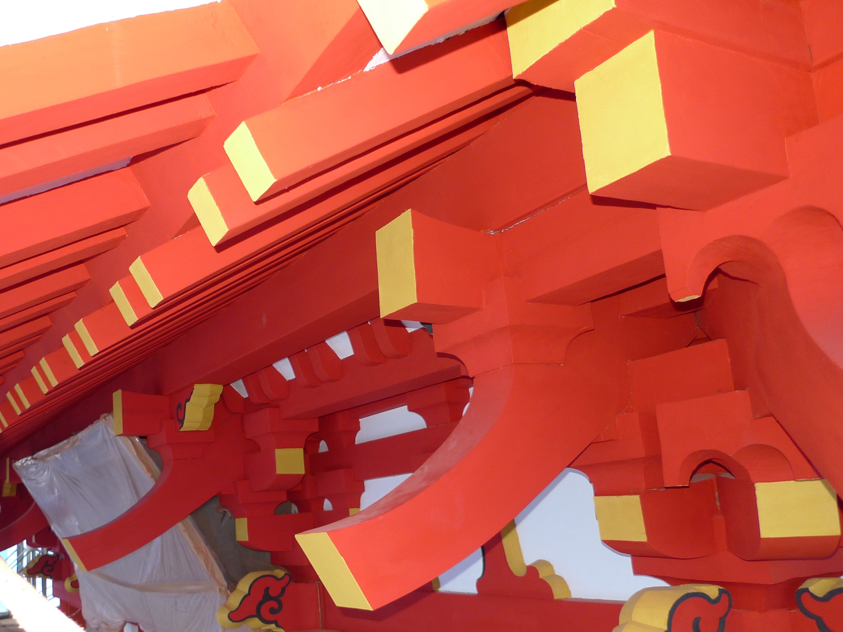 武雄温泉楼門の改修工事において 掻き落としから単彩色塗装工事を施工させていただきました。